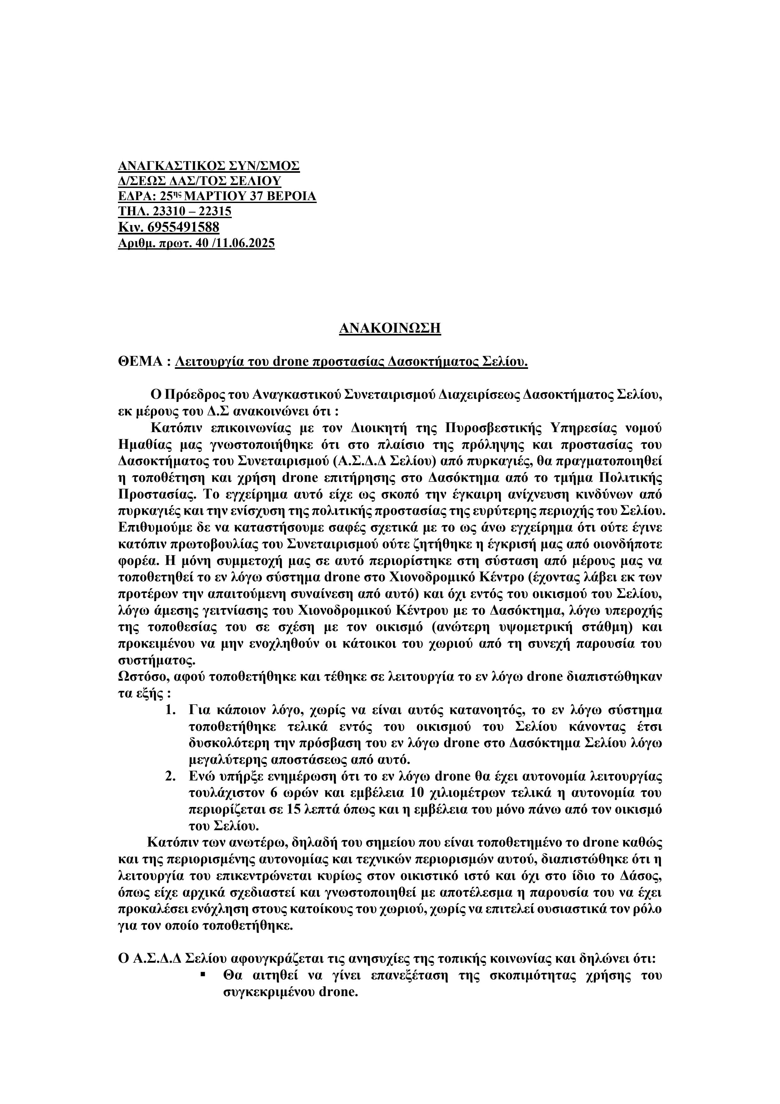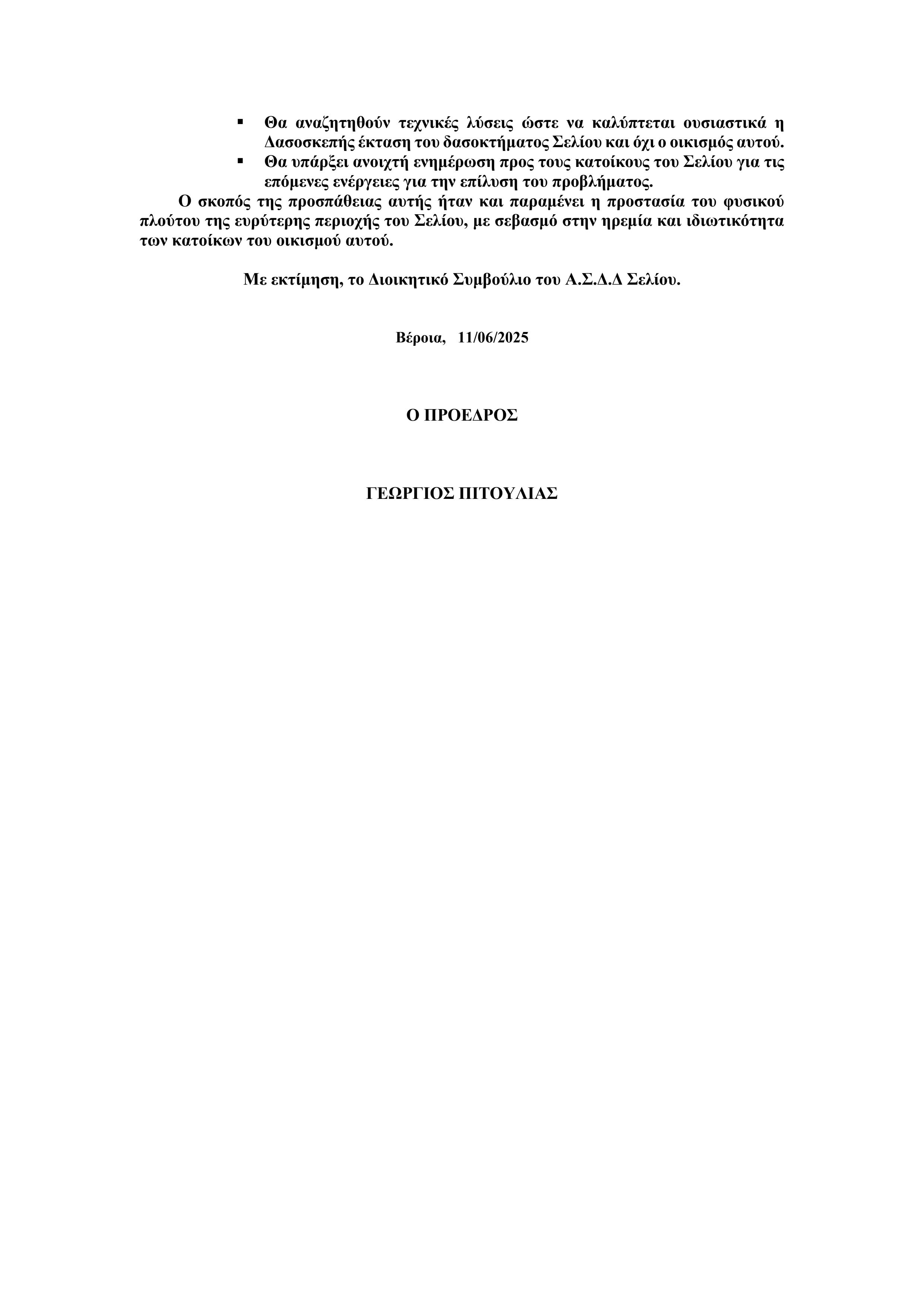 Ο Πρόεδρος του Αναγκαστικού Συνεταιρισμού Διαχειρίσεως Δασοκτήματος Σελίου ανακοινώνει ότι :